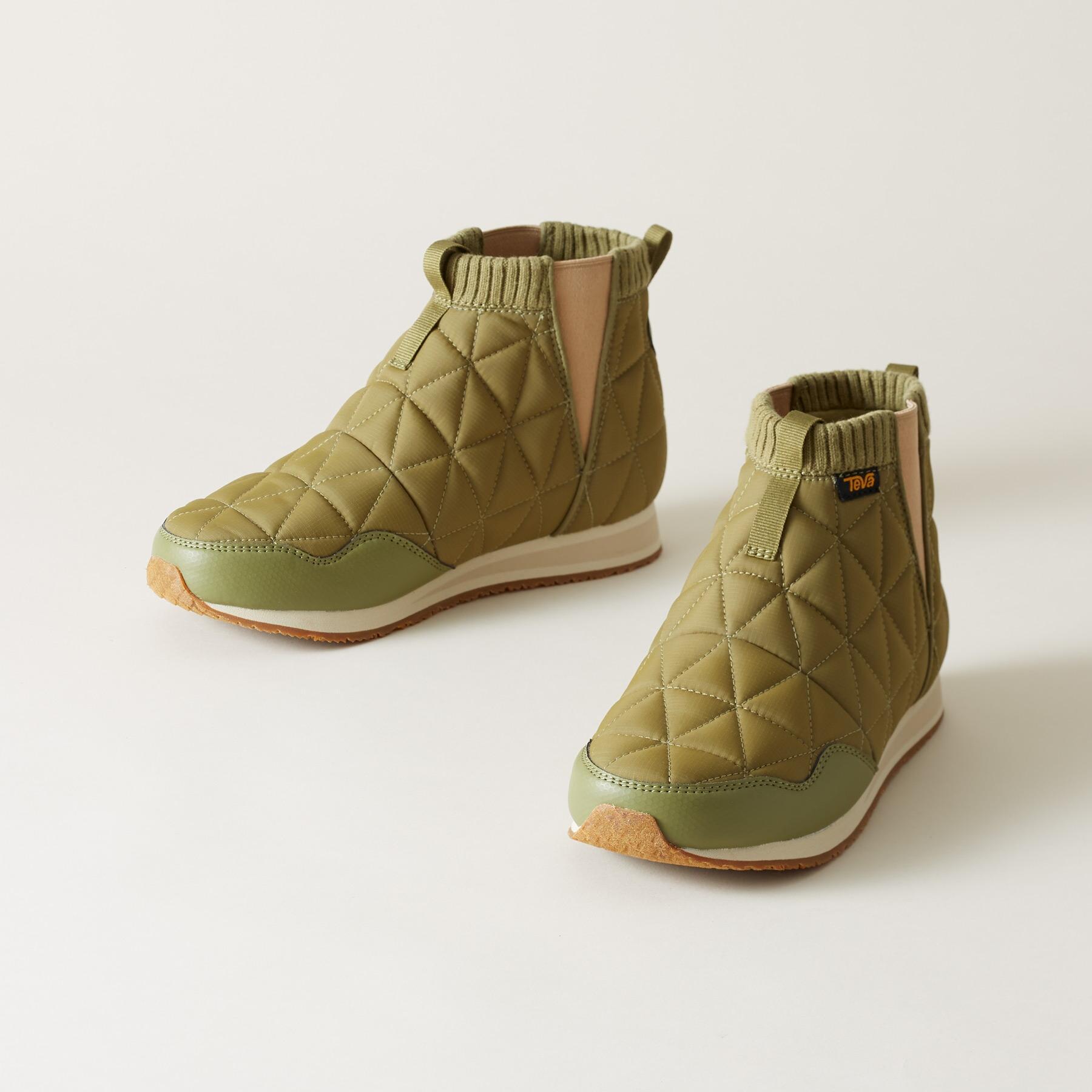 Teva? brings quilted comfort to these sporty and lightweight ‘Ember’ boots. heralded as the lovechild of a sleeping bag and a sneaker. The ultimate travel companion. ultra packable. with flexible rubber soles. Textile. Imported. Whole sizes 6 to 11. 3/4 heel.