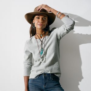 Our lightweight. faded. reverse-print sweater with exposed seaming. side slits and rib trim. Three-quarter sleeves. Cotton. Hand wash. expect dye transfer or loss. Imported. Exclusive. Sizes XS (0-2). S (4-6). M (8-10). L (12-14). XL (16-18). XXL (20-22). Approx. 23.5l.