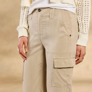 What every adventurer’s wardrobe needs: chic. flattering cargo pants made to go absolutely anywhere. Straight leg with wide hem; slash pockets at hip. flap cargo pockets on leg. Stretch cupro. Machine wash. cold; tumble dry. low. Imported. Exclusive. Sizes 24?C31. 31.25 inseam.