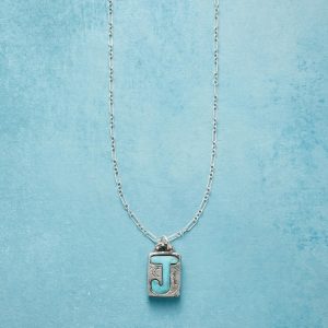 Jes MaHarry adds her personal touch. setting a hand-cut turquoise initial into a rustic bezel etched with joy on the side. love life on reverse. Sterling silver chain; Spring ring clasp. Exclusive. Handmade in the USA. Specify letter. 18l; pendant approx. 7/8l.
