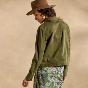 Sure. our Rhodes Jacket is technically a utility jacket. But there’s nothing basic about its trim. flattering fit??or the delicate tonal embroidery over the front patch pockets. down the sleeves and across the back yoke. Love this design? Check out the Rhodes Pants! Cotton/rayon. Machine wash. Imported. Exclusive. Sizes XS (0-2). S (4-6). M (8-10). L (12-14). XL (16-18). XXL (20-22). Approx. 21l.